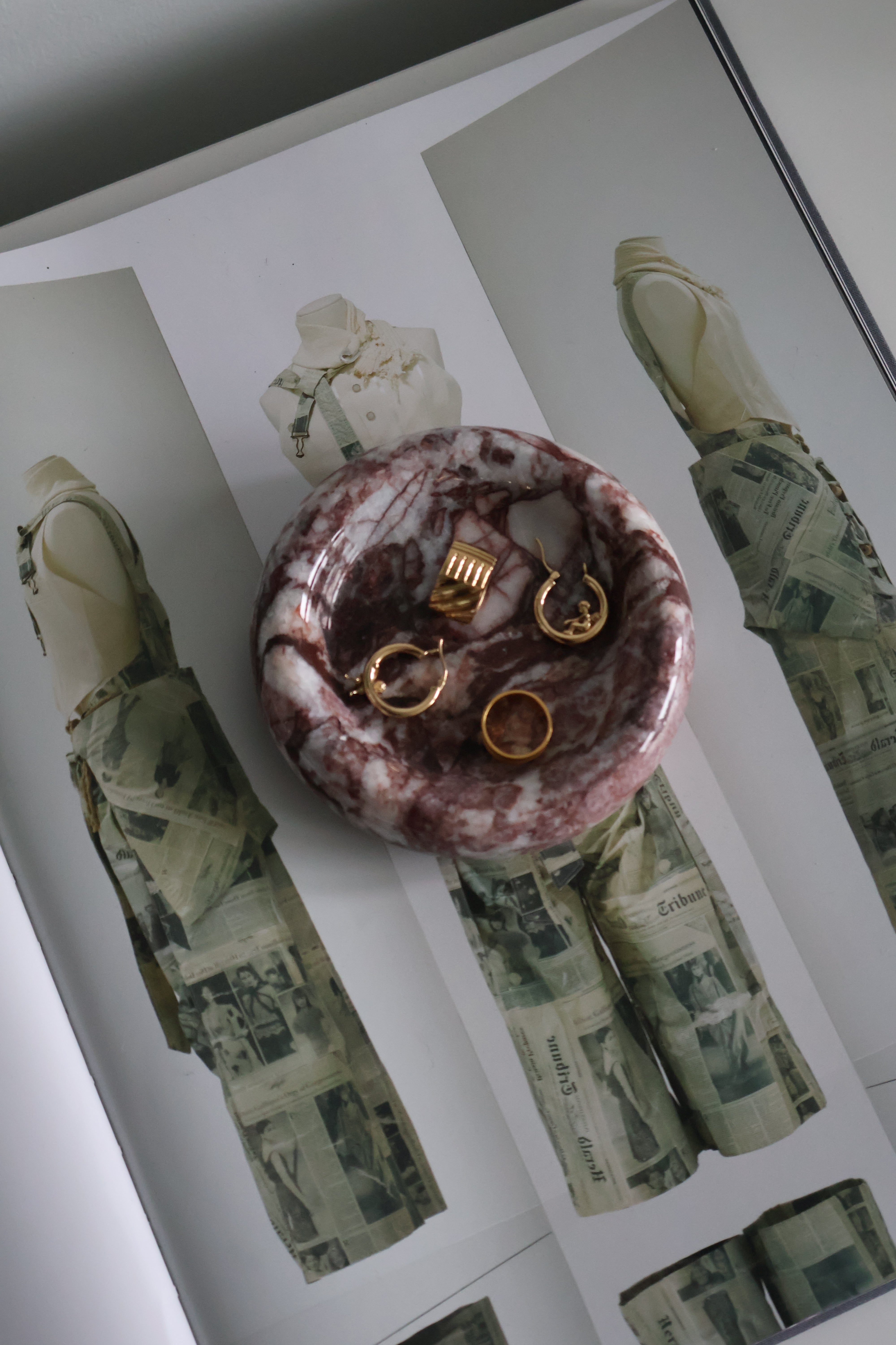 sourced from a vintage market on huaihai road, the hai marble trinket dish is carved from richly veined marble in deep maroon and soft white tones. its rounded silhouette and polished finish bring quiet luxury to any surface - perfect for jewelry, keys, or small personal objects. the natural pattern in the stone makes this a true one-of-one vintage piece.